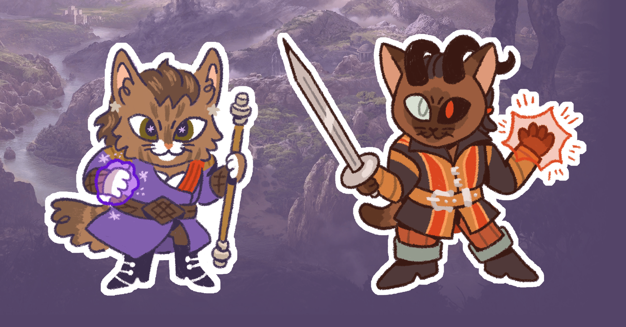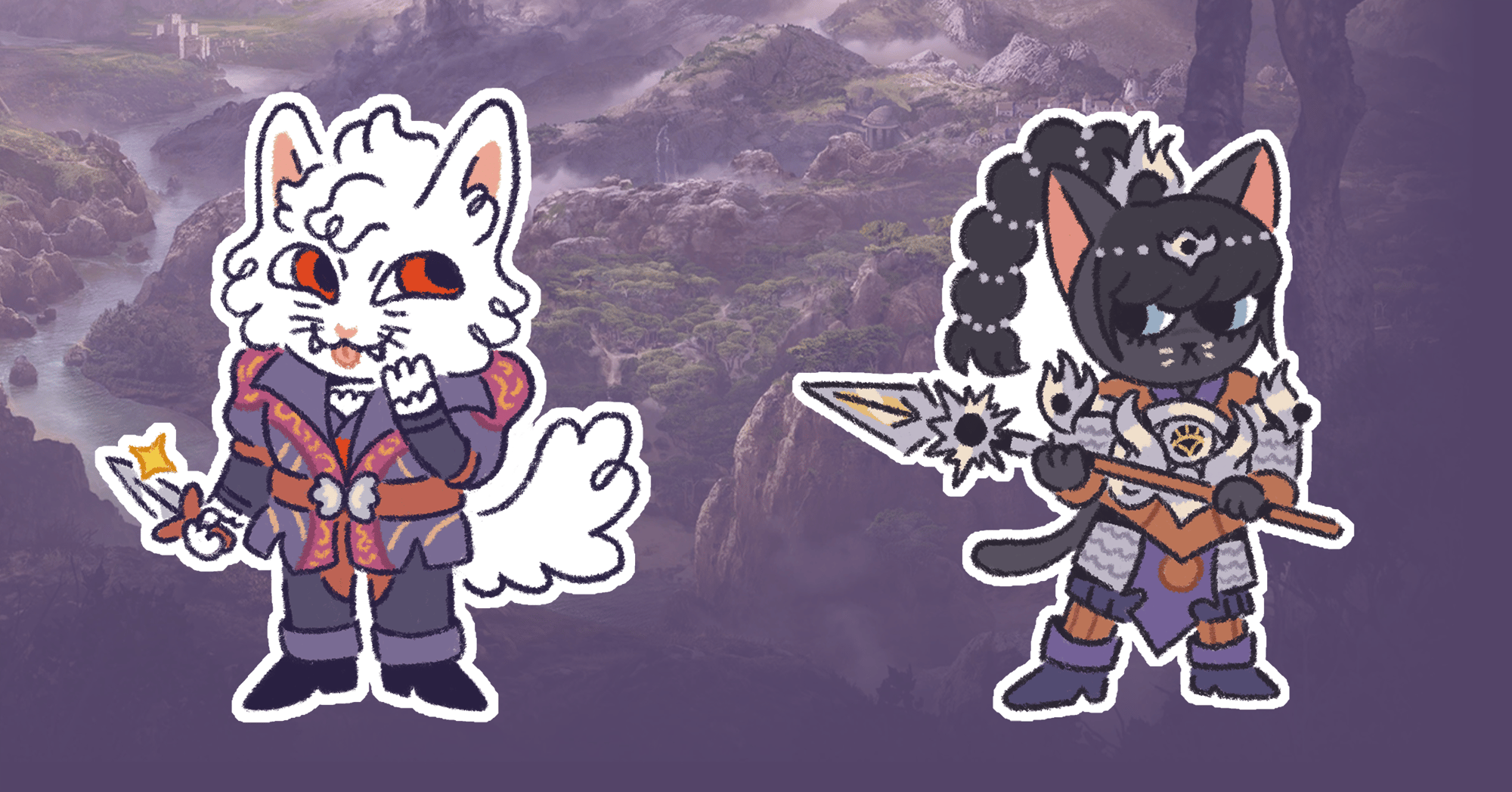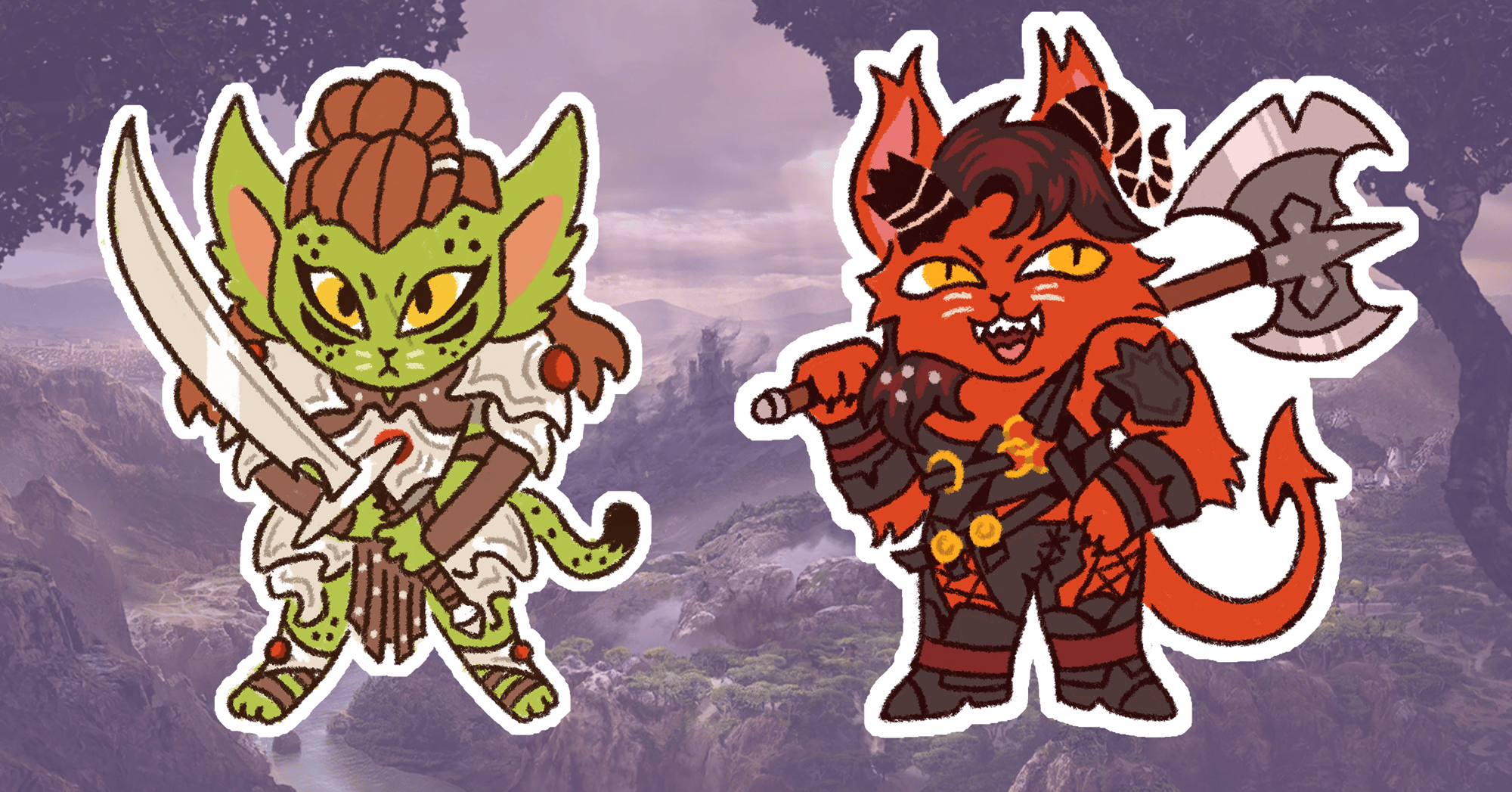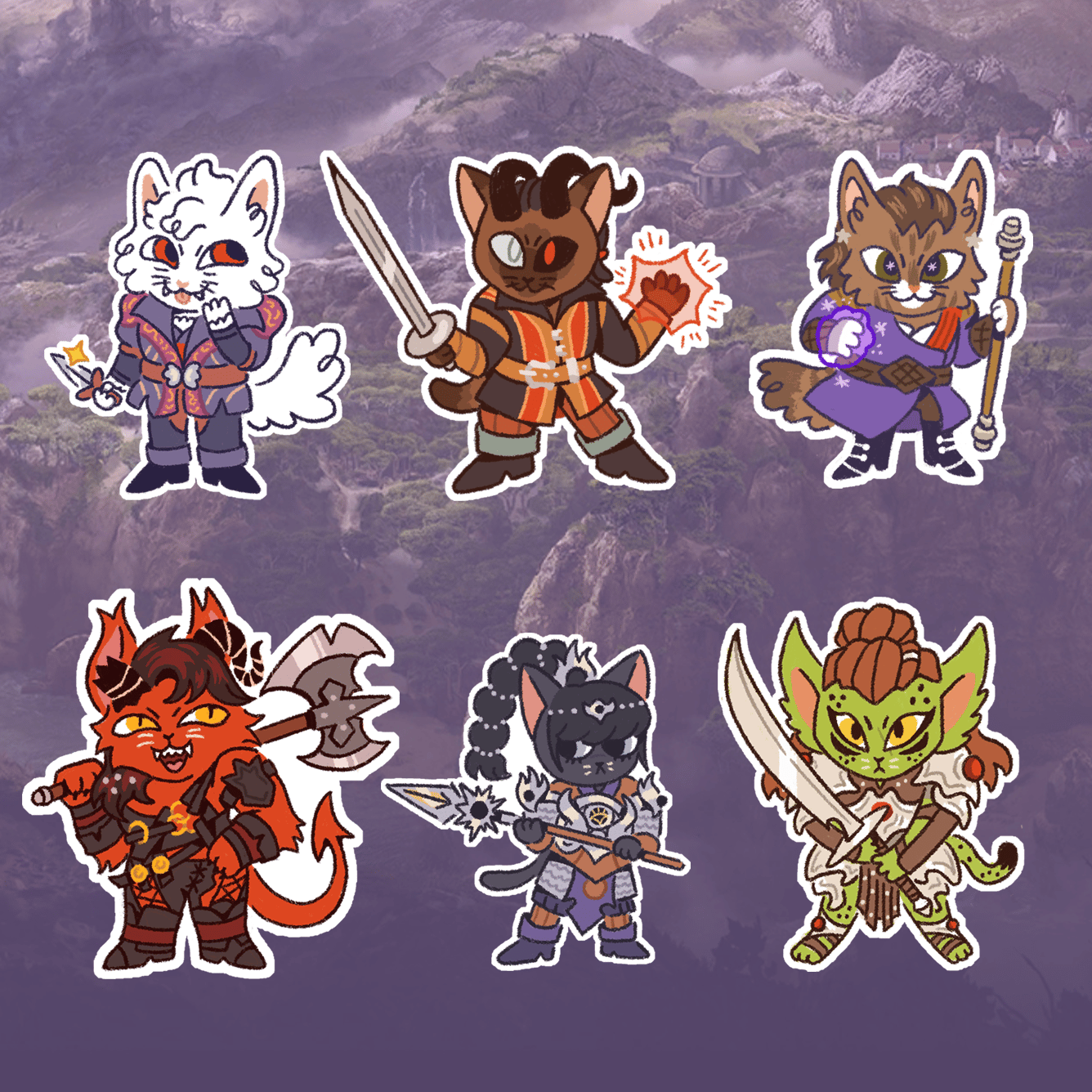 Stickers of Baldur's Gate 3 Characters...except they are all cats.